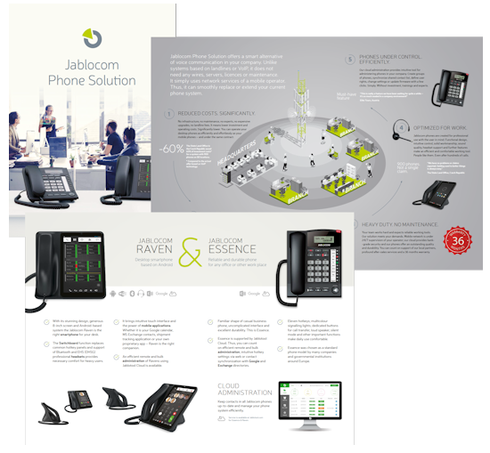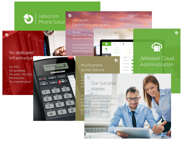 - Sales presentation introducing Jablocom, explaining our phone solution and its main benefits, summarizing our phone portfolio and presenting important success stories.